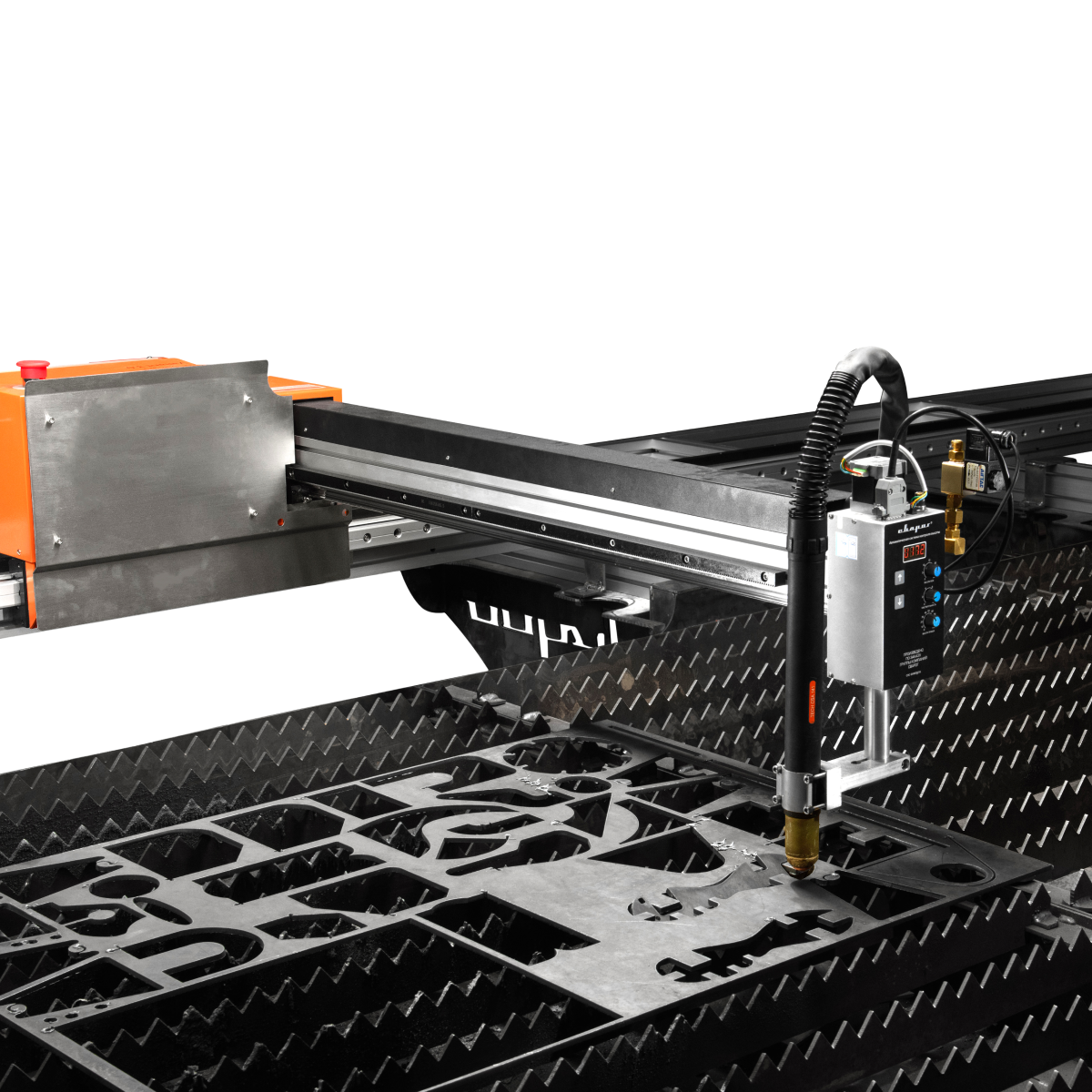 - Наличие автоматической системы контроля высоты (АСКВ) горелки относительно разрезаемого листа для воздушно–плазменной и газопламенной резки с допустимым перепадом высоты до 100 мм. Также возможно использование ручной системы контроля высоты